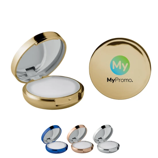Baume à lèvres dans un boitier métallisé avec miroir dans le couvercle. SPF10.Saveur: Vanille.