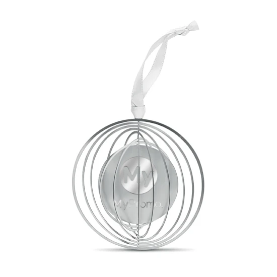 Décoration de Noël de forme ronde en acier inoxydable avec ruban présenté dans une enveloppe cadeau. Facile à plier en une jolie boule.