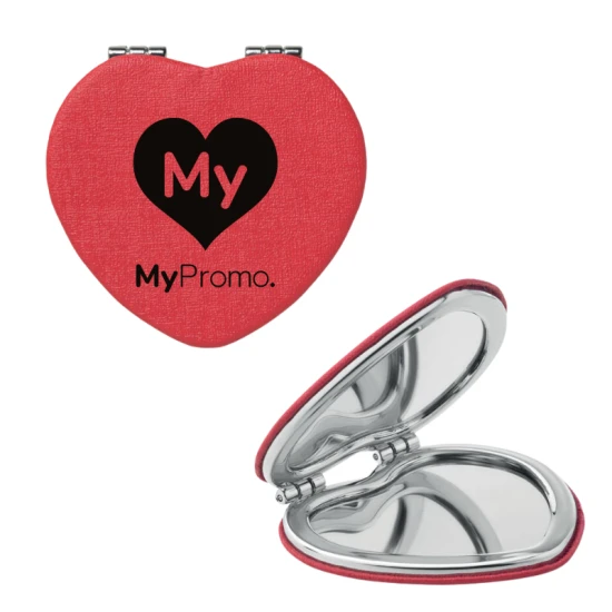 Double miroir de poche en forme de cœur en PU, fermeture magnétique.