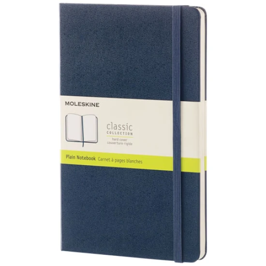 Le carnet Moleskine Classic grand format (13x21cm) à couverture rigide présente une couverture cartonnée aux coins arrondis, du papier sans acide, un signet et un élastique de fermeture. Sur la première page, un avis de perte avec un espace pour noter une récompense pour la personne qui le trouve. Au dos de la couverture, une pochette intérieure extensible contient l'historique du Moleskine. La pochette peut être utilisée pour les feuilles volantes et les notes. Contient 240 pages unies de couleur ivoire. Les pages sont également disponibles en papier pointillé, quadrillé et ligné. Disponible dans une large gamme de couleurs vives et élégantes. Papier en simili-cuir.