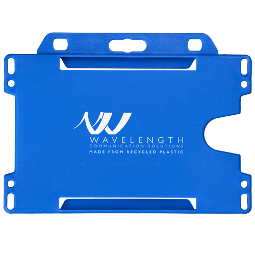 Porte-cartes paysager en plastique recyclé. Idéal pour les expositions, les lieux de travail et les événements de réseautage. Convient aux laissez-passer de taille standard (carte de visite et carte de crédit). Plastique PP recyclé.