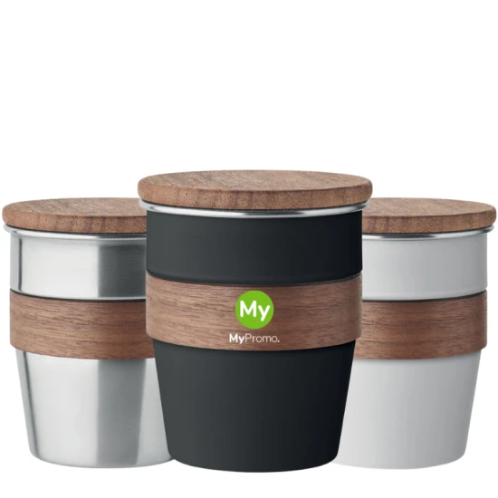 Gobelet | Acier inoxydable recyclé | 350 ml | Avec poignée et couvercle en noyer | Durable