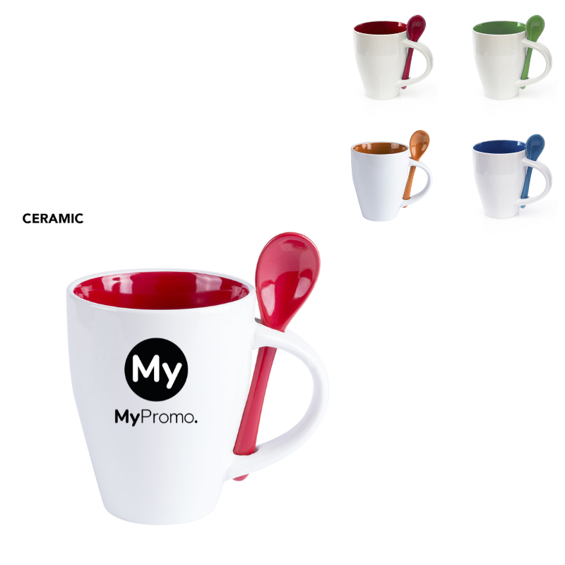 Le Mug Cotes est un mug en céramique de 350ml qui offre une combinaison extérieure amusante en blanc et intérieure dans une large gamme de couleurs vives. Avec une cuillère en céramique intégrée de couleur assortie dans la poignée et présentée dans une boîte individuelle, ce mug est parfait pour les cadeaux d'entreprise et les articles promotionnels. La céramique est un matériau durable et robuste qui résiste aux rayures et aux chocs, ce qui en fait un produit de qualité qui durera longtemps. La poignée est conçue pour offrir une prise en main confortable et le mug est assez grand pour contenir 350ml de votre boisson préférée. Offrez ce mug unique et coloré comme cadeau d'entreprise ou article promotionnel pour montrer à vos clients et collaborateurs que vous vous souciez de leur bien-être et de leur satisfaction. Ce mug est un excellent moyen de promouvoir votre marque et de montrer votre engagement envers la qualité et le style.