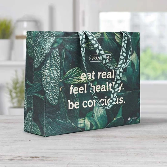 Sac shopping en coton avec soufflet et longues anses. Faites produire les sacs en coton dans leur couleur naturelle ou teints dans la couleur de votre logo et commencez à créer. Vous pouvez imprimer votre design en bord à bord :