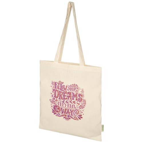 Sac shopping 100 % coton biologique 100 g/m² certifié OCS originaire d’Inde, doté d’un grand compartiment principal ouvert offrant beaucoup d’espace pour transporter tous vos objets essentiels. Les poignées de 32 cm de long le rendent confortable et facile à transporter où que vous alliez. Capacité de charge maximale de 5 kg. Capacité : 7 litres. Coton organique, 100 g/m2.