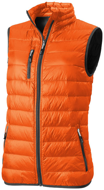 Dites adieu au froid avec notre bodywarmer en nylon pour femmes. Ce bodywarmer est doté de plumes et de duvet compressé pour vous tenir chaud tout l'hiver. La taille effilée flatte votre silhouette, tandis que la poche poitrine avec fermeture éclair et les poches pour les mains zippées vous permettent de garder vos essentiels en sécurité. Avec une finition hydrofuge et un rabat-tempête intérieur avec protège-menton, vous êtes prêt pour affronter tous les temps. Offrez-le en cadeau à vos clients ou personnalisez-le pour promouvoir votre marque grâce à notre impression de qualité.
